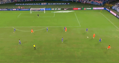 上半场补时第4分钟,陈蒲斜传,卡扎伊什维利扛住马纳法后右脚扫射破门,2比2!